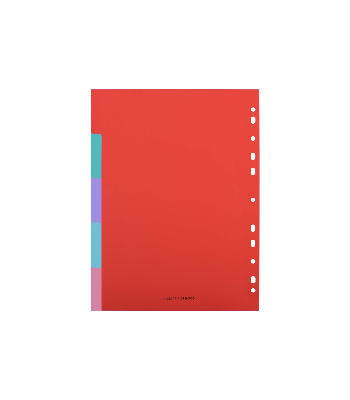در بسته بندی این نوع ایندکس هر جدا کننده یک رنگ خاص بوده و برگه هایی به سایز A4 در آن جای می گیرند.