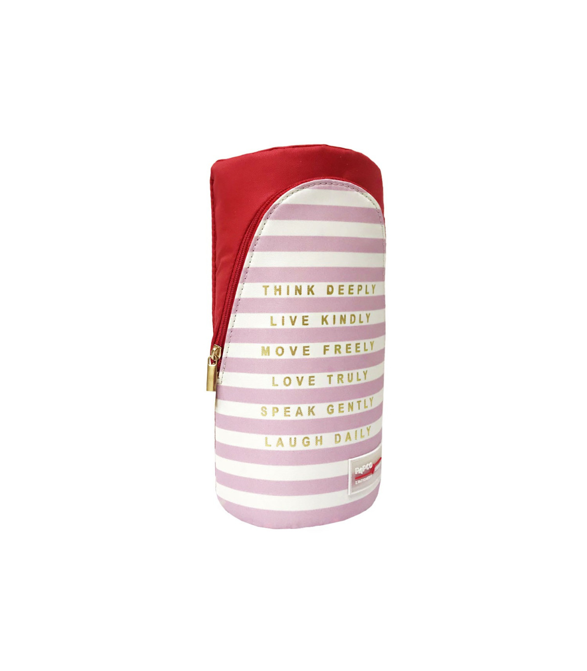 این جامدادی در رنگ های متفاوت و با طرح خال خالی و راه راه موجود هستند که می توانید طرح و رنگ راه راه آن را با دفتر و دفتر یادداشت های پارچه ای هماهنگ کنید و یک ست زیبا و لوکس از لوازم التحریر پاپکو با خود داشته باشید.