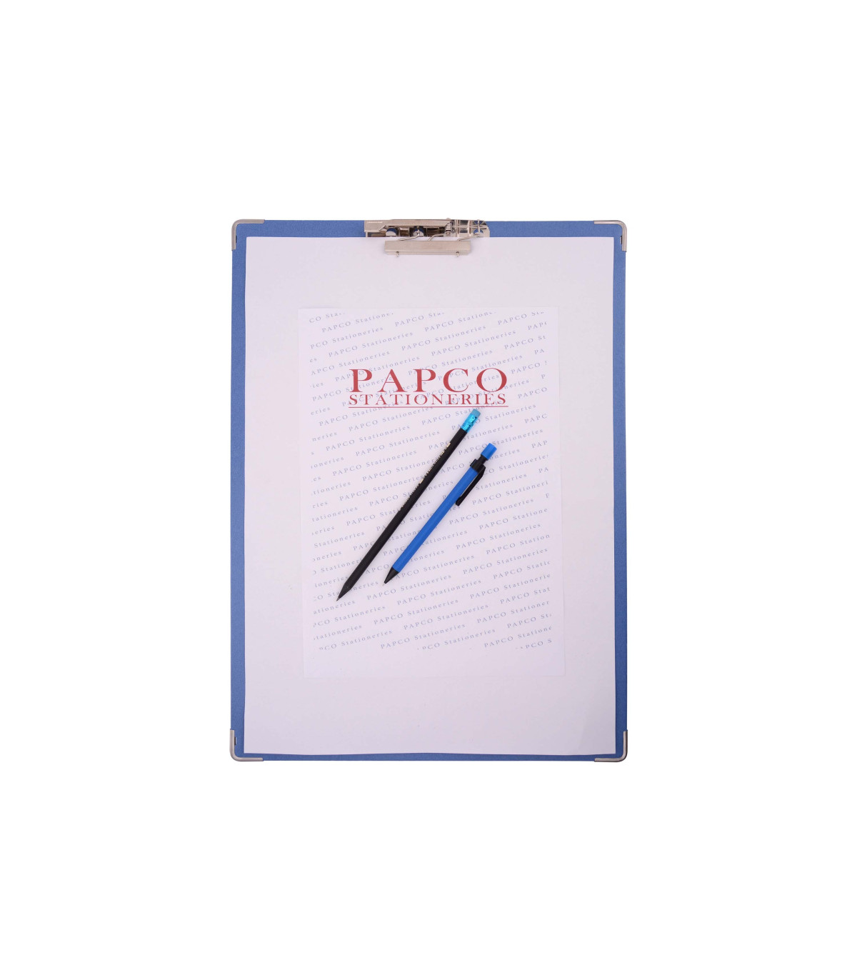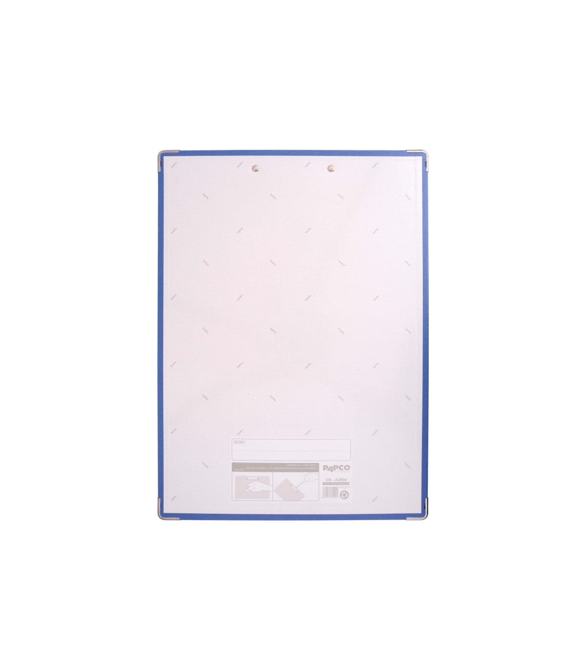 این زیردستی که ازجنس مقوا در سایز A3 و دو رنگ آبی و طوسی تولید شده، به وسیله یک گیره فلزی برگه ها و مدارکتان را به خوبی نگه داشته و مانع پراکندگی و گم شدن آن می شود. این گیره و چهار قطعه فلزی حاشیه زیردستی پس از اتمام عمر مفید آن قابل جدا شدن بوده و پاپکو با این طراحی گامی بزرگ در بازیافت محصولات و حفظ منابع طبیعی برداشته است.