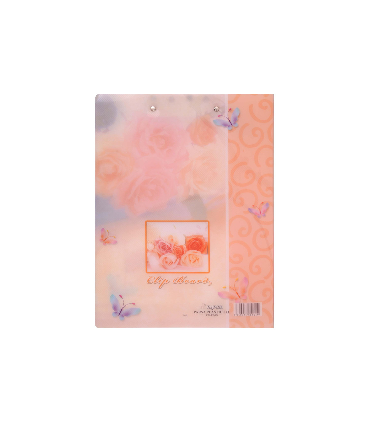جنس آن نیز از پلاستیک راه راه بوده و به صورت کلاسوری باز می شود. در سمت راست این محصول علاوه بر گیره فلزی نگهدارنده کاغذ، یک جیب که روی آن دو محفظه برای قرارگیری خودکار و کارت ویزیت تعبیه شده است، قرار دارد.