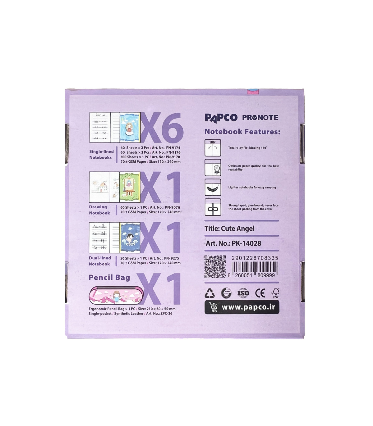 محصولات موجود در پک دفتر پرونوت دخترانه پاپکو :