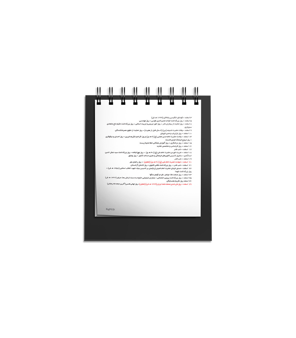 محتوا تقویم رومیزی ایستاده یک بخشی 1404