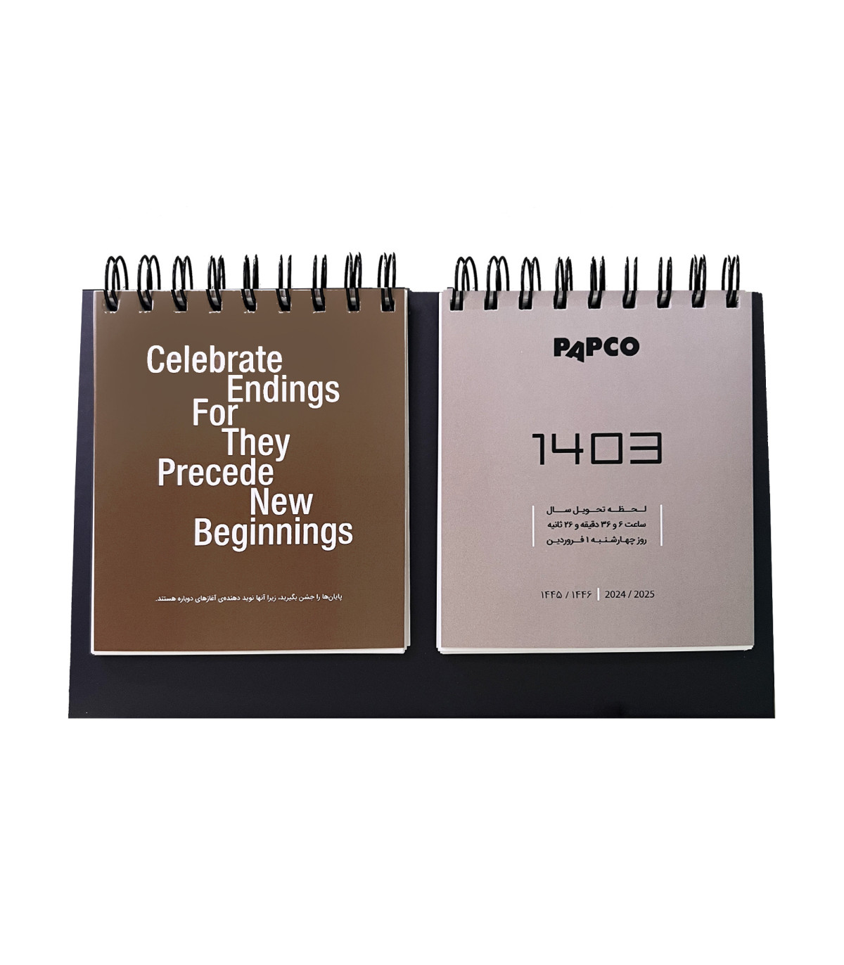 همچنین، تقویم دو بخشی پاپکو یکی ازهدایای تبلیغاتی موثر و هوشمندانه میباشد که میتوان آن را به تنهایی و یا همراه با سررسید های جذاب پاپکو به مشتریان،همکاران و مخاطبین دیگر ارائه داد