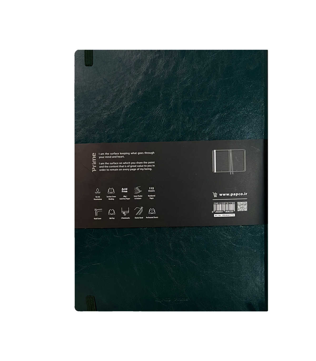 دفتر پرایم، یک خط بوده که فاصله بین خطوط آن 7 میلی متر و در واقع نزدیک به هم هستند. علاوه بر اینکه 112 برگ است، فضای زیادی برای نوشتن و در هر صفحه 27 خط دارد. در صفحه اول آن می توانید نام و اطلاعات تماس خود را برای جلوگیری از گم شدن دفتر بنویسید. در انتهای این دفتر یک جیب کاغذی نگهدارنده برای قرار دادن برگه های شما تعبیه شده است که حاوی یک برگ برچسب می باشد. جنس جلد این دفتر مقوایی و به قدری سخت و محکم است که به هیچ عنوان پاره نمی شود و تا چندین سال می توانید از آن استفاده کنید. و پس از بسته شدن با یک کش محفوظ می شود. همچنین دارای 2 ربان نشانک جهت نشان کردن صفحات مورد نظر شما است.