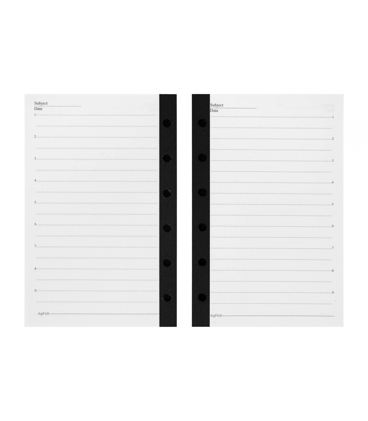 این اوراق شامل 120 برگ (240 صفحه) و 6 پانچ است. یک خط بوده و در صفحات اولیه آن تقویم در یک نگاه سال جاری و بعد، صفحه ثبت اطلاعات تماس و جدول برنامه ریزی هفتگی دارد. اوراق دفتر یادداشت قفل فلزی در ابعاد 8 × 12.7 سانتی متر و 11 رنگ متنوع تولید و عرضه می شود. رنگ این برگه ها در حاشیه آنهاست که با رنگ جلد دفتر ست می شود.