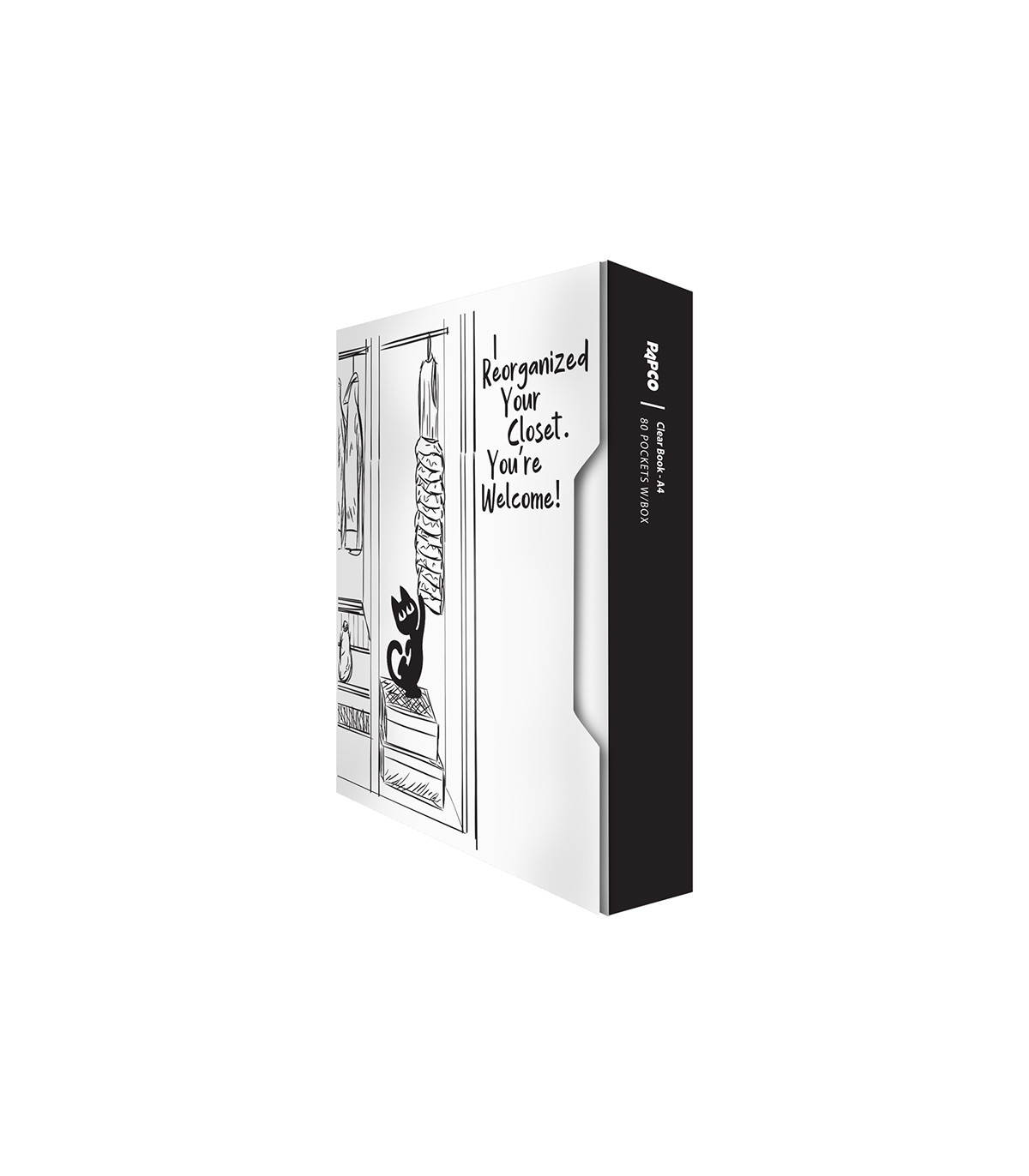 کلیر بوک سری بلک اند وایت پاپکو یک کلاسور شفاف با ۸۰ برگ (۸۰ پاکت شفاف داخلی) در سایز A4 است که میتواند حجم زیادی از اسناد، مدارک، جزوات و برگههای مهم شما را بهطور مرتب و حرفهای نگهداری کند. طراحی جلد آن با طرح گرافیکی گربه و جملهای خلاقانه، جذابیت خاصی به محصول داده و باعث میشود روی میز کار یا در کتابخانهتان متفاوت به نظر برسد.
