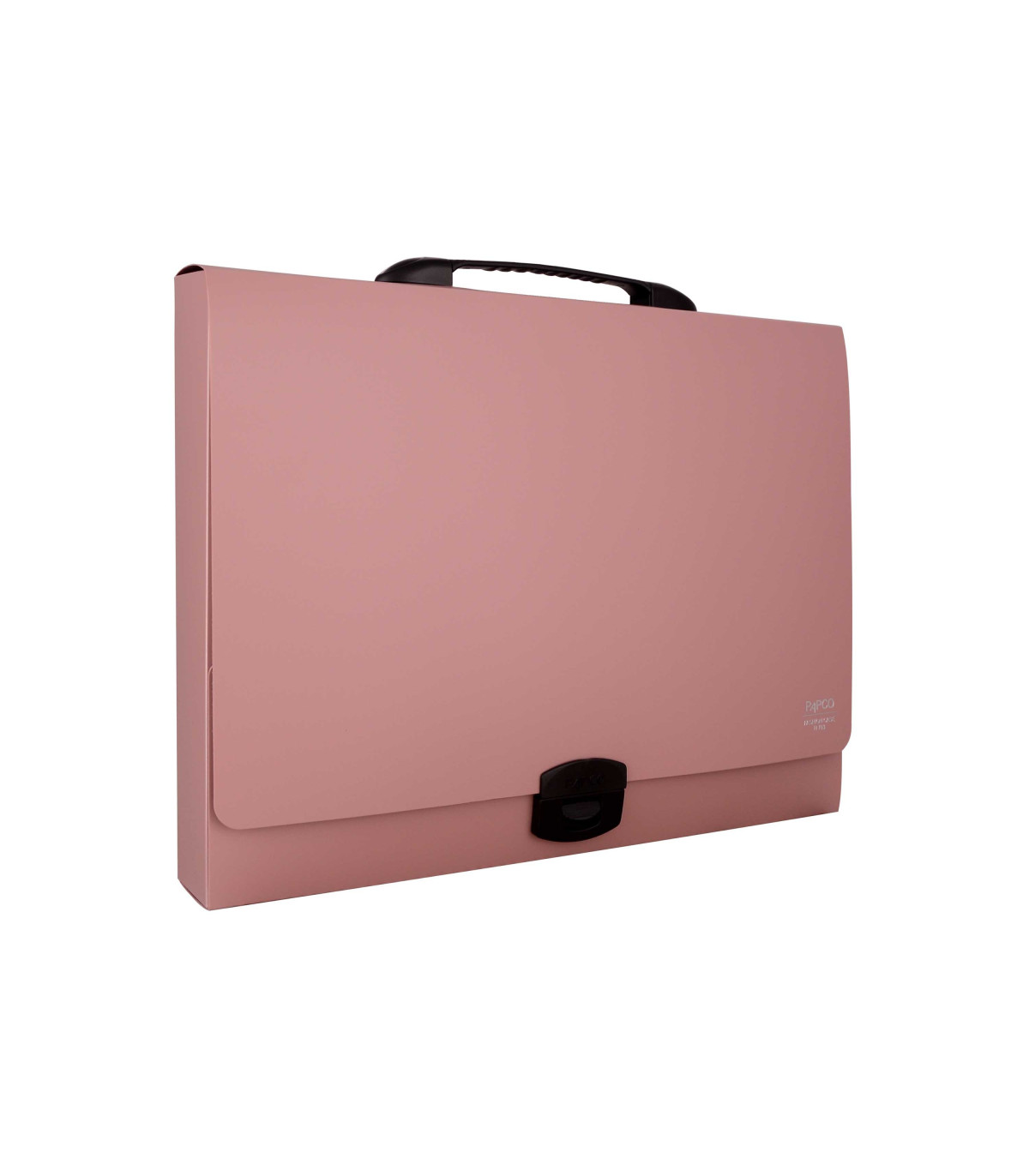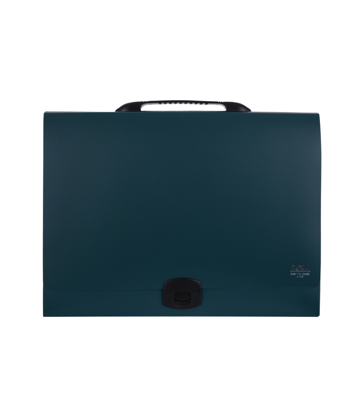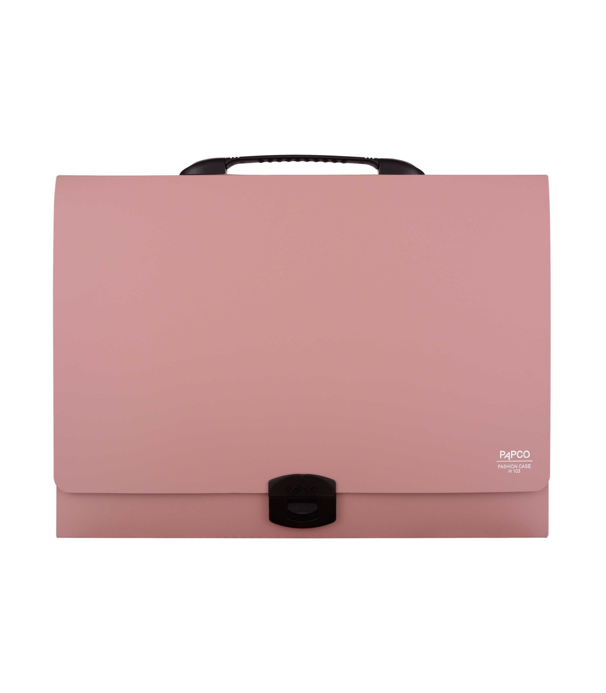 کیف سمیناری کد H – 103 در دوازده رنگ متنوع از پلاستیک با کیفیت مات تولید شده و به وسیله یک قفل پلاستیکی بسته می شود.