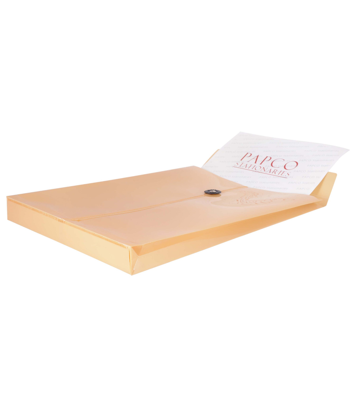 این پاکت پلاستیکی بوده و از جنسی بسیار مرغوب و باکیفیت تنها در یک رنگ کرم تولید و عرضه شده است. درب آن به وسیله نخ بسته شده و فضایی امن را برای نگهداری برگه ها و مدارکتان ایجاد می کند. همچنین به واسطه داشتن عطف 3 سانتی متری خود تا حدود 300 عدد برگه A4 را در خود جای می دهد.