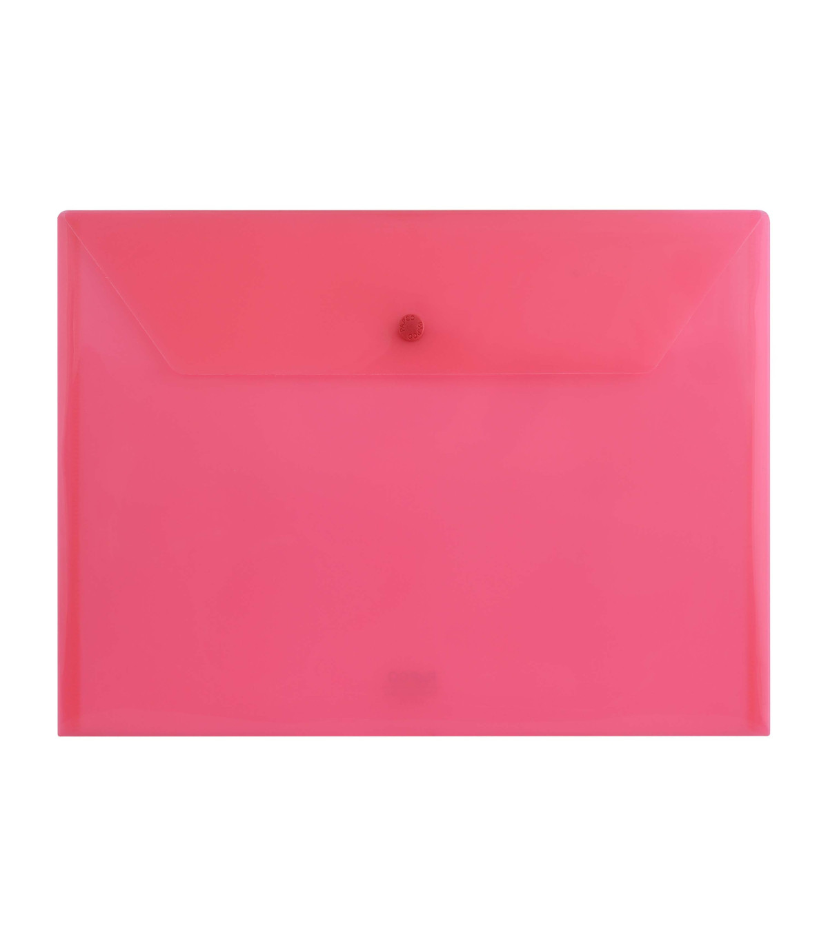 پاکت دکمه دار شفاف A4 کد A4– 105T در شانزده رنگ متنوع تولید شده و ظرفیت نگهداری حداقل 50 عدد برگه A4 را دارد.