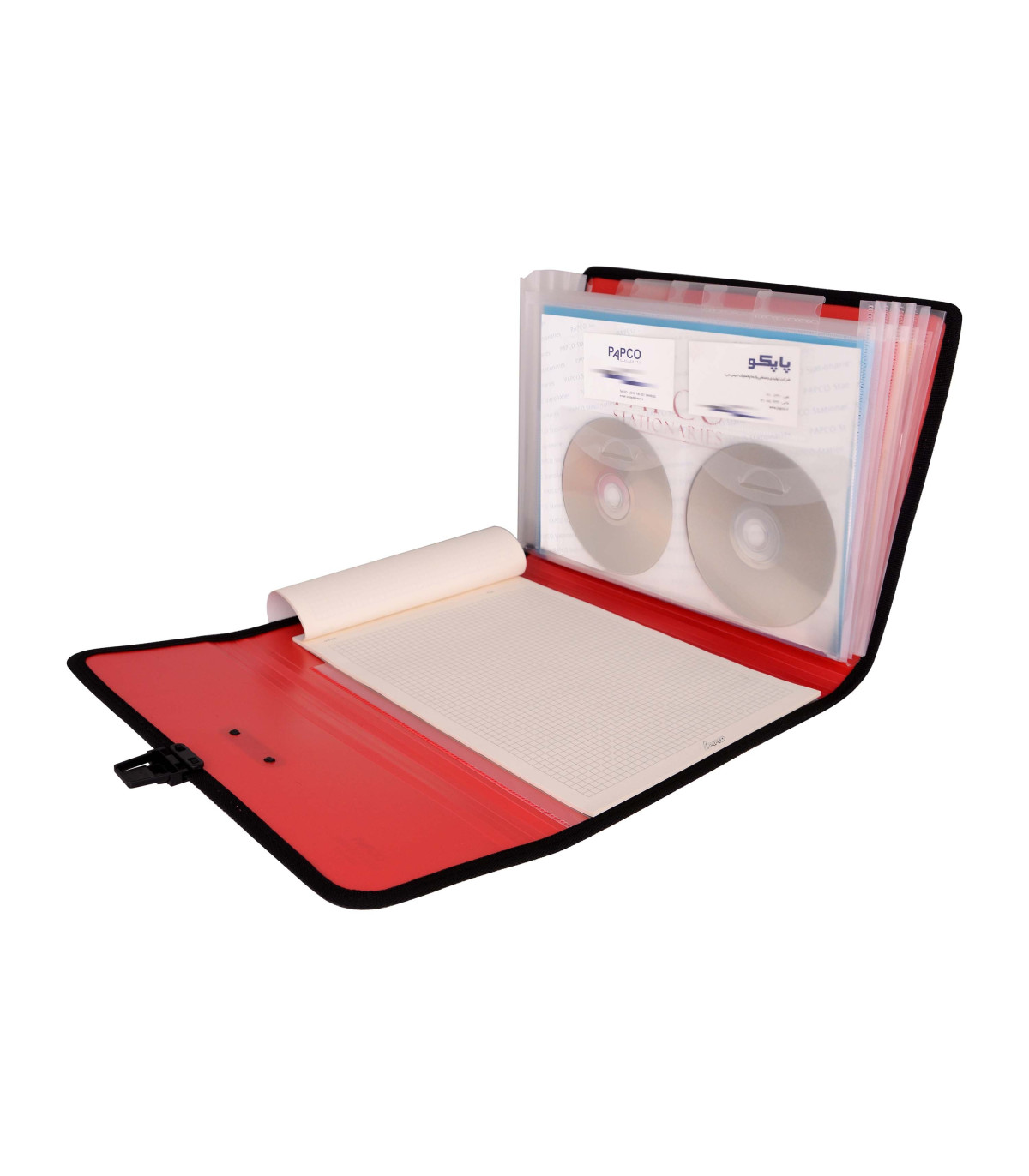 این اکسپندینگ فولدر (نگهدارنده مدارک) دارای 5 فایل (خانه) با لیبل هایی برای تفکیک موضوعی اسناد و مدارک، دو عدد جای CD ، دو عدد جیب برای کارت ویزیت و برگه هایی به عنوان دفتر یادداشت شطرنجی بوده و با قفل پلاستیکی بسته می شود. این محصول به دلیل داشتن عطف 3.7 سانتی متری حدود 350 برگه را در خود جای می دهد و در رنگ های مختلف و شاد تولید و عرضه می گردد.