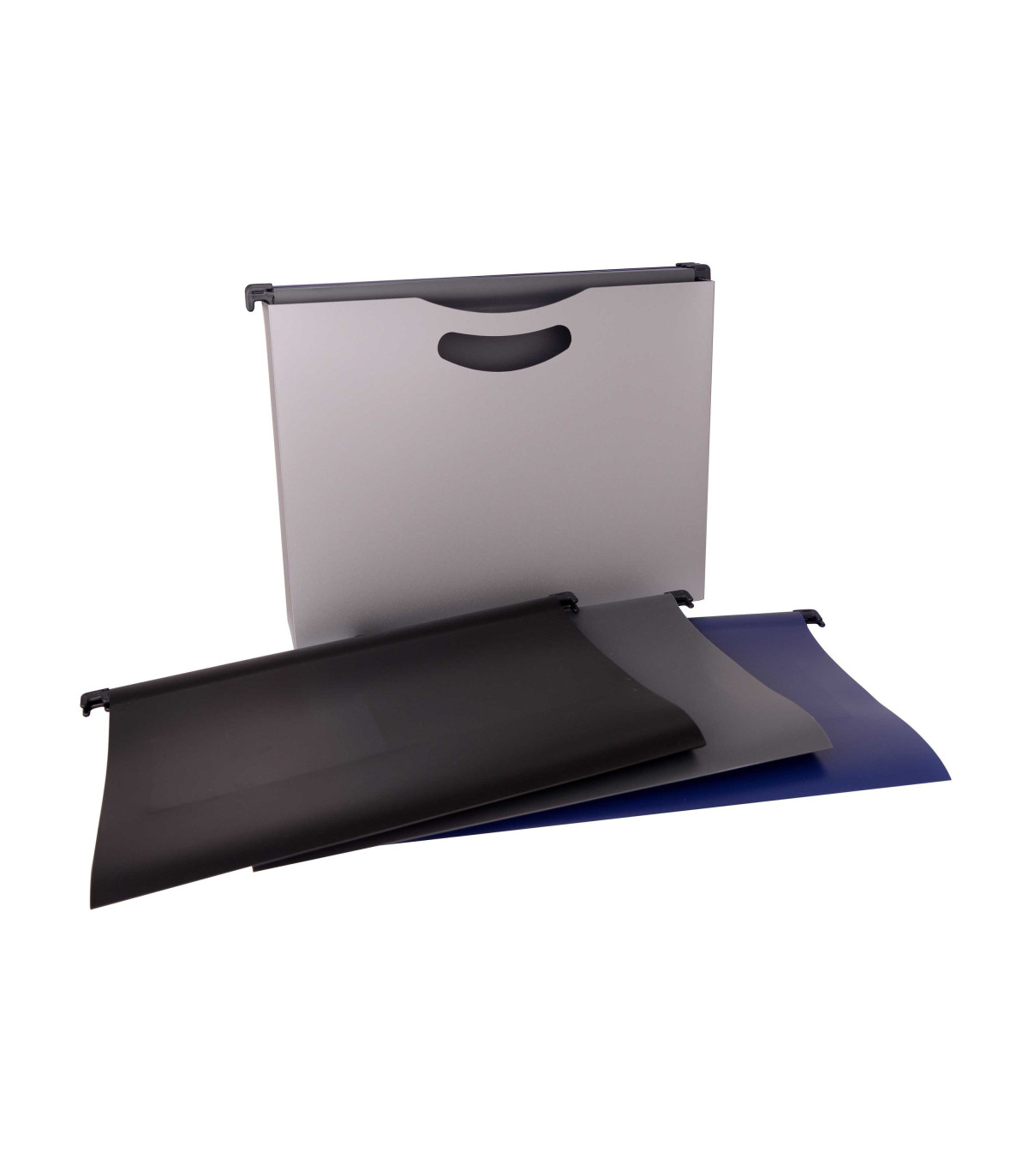 همچنین داشتن 6 پوشه آویز به ابعاد 31 × 24.8 سانتی متر در سه رنگ طوسی، بنفش و مشکی یکی دیگر از مزایای این باکس است که به سازماندهی بهتر مدارک شما کمک می کند. لازم به ذکر است که پوشه های این باکس مخصوص همین محصول بوده و سایر پوشه آویزها در آن جا نمی شود.