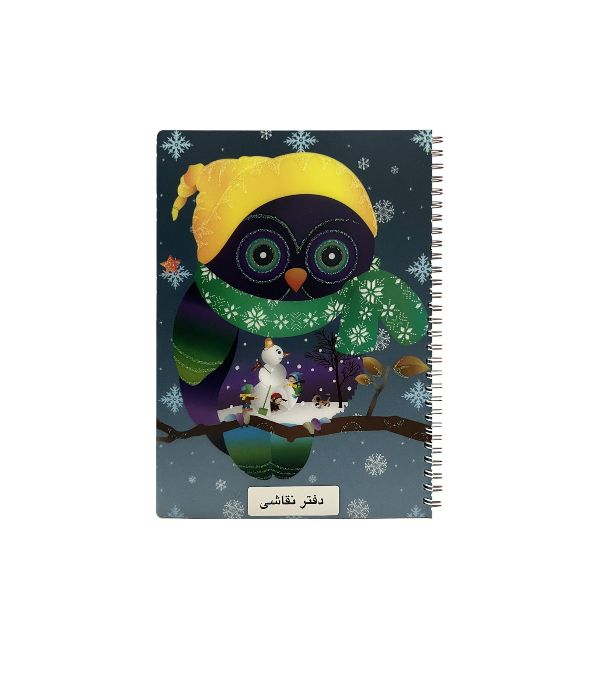 این دفتر از کاغذی با کیفیت و مرغوب تولید و در طرح های مختلف و زیبا برای سنین مختلف عرضه شده است. صحافی دفتر نیز به صورت فنر دوبل بوده که این نوع فنر به راحت باز و بسته شدن و ورق خوردن دفتر کمک می کند. جلد این محصول از جنس پلاستیک شنی نیمه شفاف بوده و طرح برجسته آن نیز از دیگر جذابیت های آن است.
