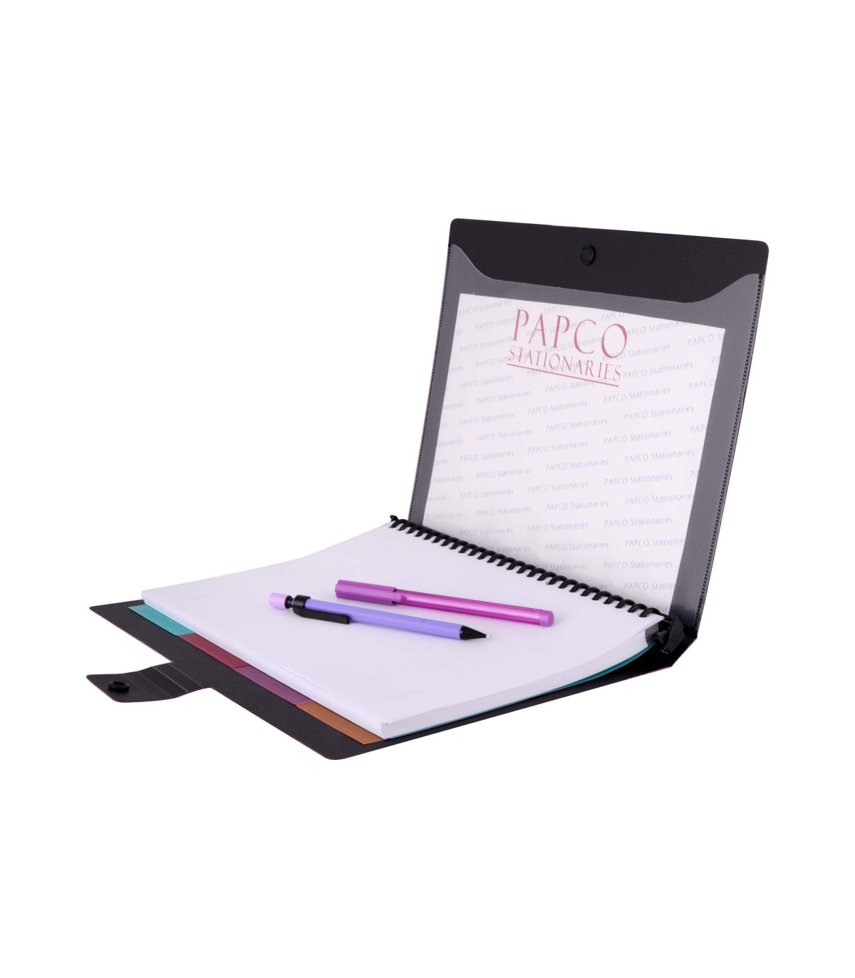 کلاسوری بودن این دفتر علاوه بر آنکه امکان کم و زیاد کردن برگه ها را به شما می دهد، کمک می کند به واسطه چهار دیوایدر (جداکننده) رنگی که در آن قرار داده شده، برگه های دروس مختلف را تفکیک نمود و به جای چند دفتر با تعداد برگه های زیاد تنها یک دفتر کلاسوری را حمل کرد.