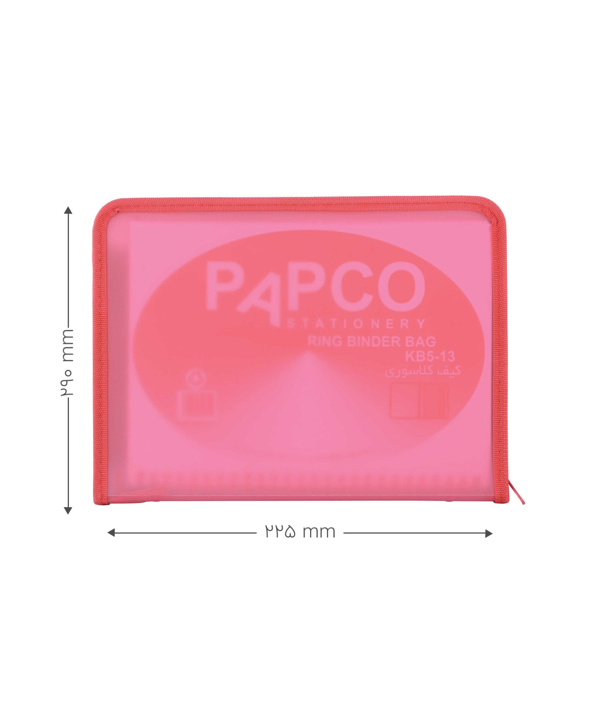 دفتر کیفی کد KB5 – 13 دفتری است با طراحی خاص مناسب برای کسانی که می خواهند جزوات و نوشته هایشان را در یک دفتر با ابعادی کاربردی همراه داشته بدون آنکه کیفی حمل کنند. این دفتر کلاسوری و 100 برگ بوده و در سمت چپ خود یک جیب به ابعاد 27.5 × 13.5 سانتی متر داشته که با زیپ بسته شده و محتویات خود را از بیرون ریختن محفوظ می کند. همچنین یک جیب مناسب برای نگه داری کارت ویزیت، کارت شناسایی یا کارت بانکی و دو محفظه نگهدارنده خودکار و نوشت افزار نیز در این کیف تعبیه شده است.