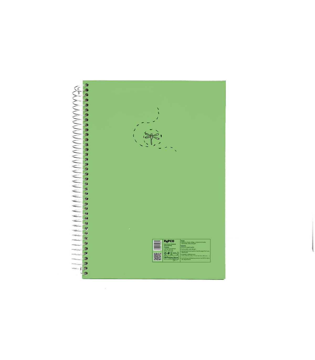 صحافی سیمی دفتر جلد سخت باعث می شود دفتر به صورت 180 درجه روی سطح باز شود و به راحتی ورق زده شود. کاغذ 80 گرمی با بافت یکنواخت نیز کیفیت و ضخامتی دارد که از پس دادن جوهر در اثر نوشتن با خودکار به طرف دیگر برگه جلوگیری می کند.