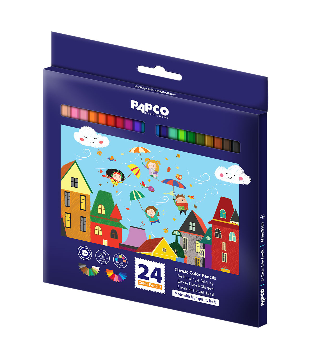 ویژگیهای مداد رنگی کلاسیک بلند شش ضلعی جعبه مقوایی 24 رنگ